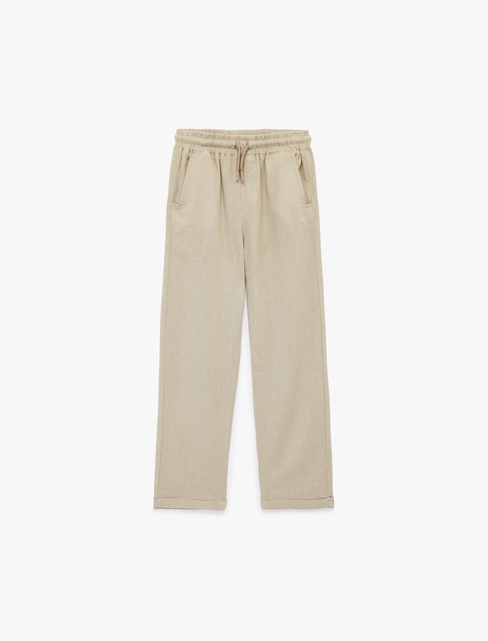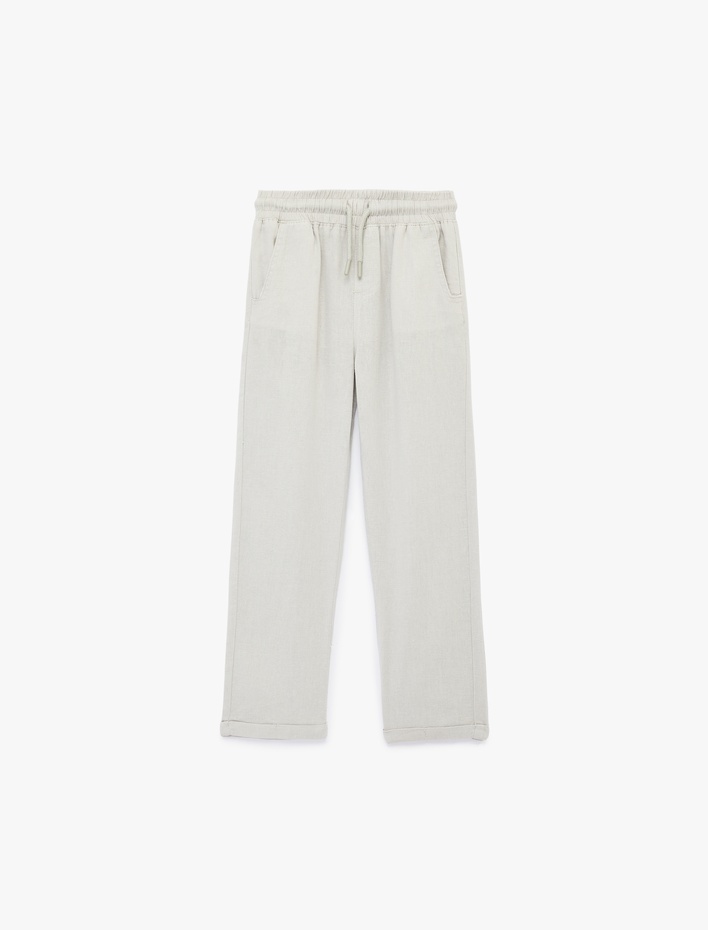 Keten ve Viskon Karışımlı Beli Bağcıklı Pantolon Sepete Ekle