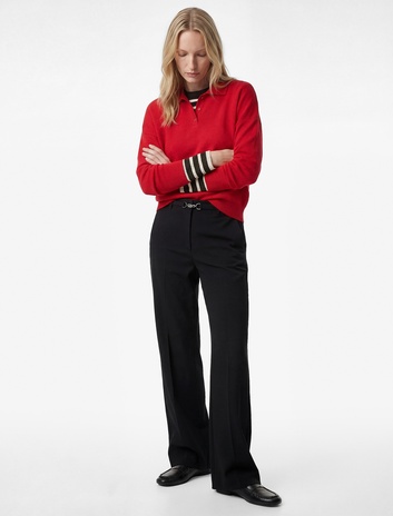 Krep Kumaş Metal Aksesuarlı Cepli Düz Paça Kumaş Pantolon Sepete Ekle