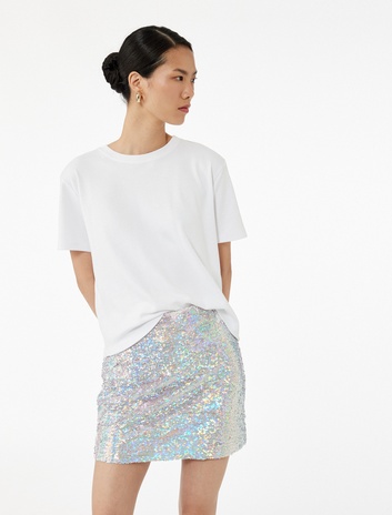 Pullu Payetli A Kesim Mini Abiye Etek