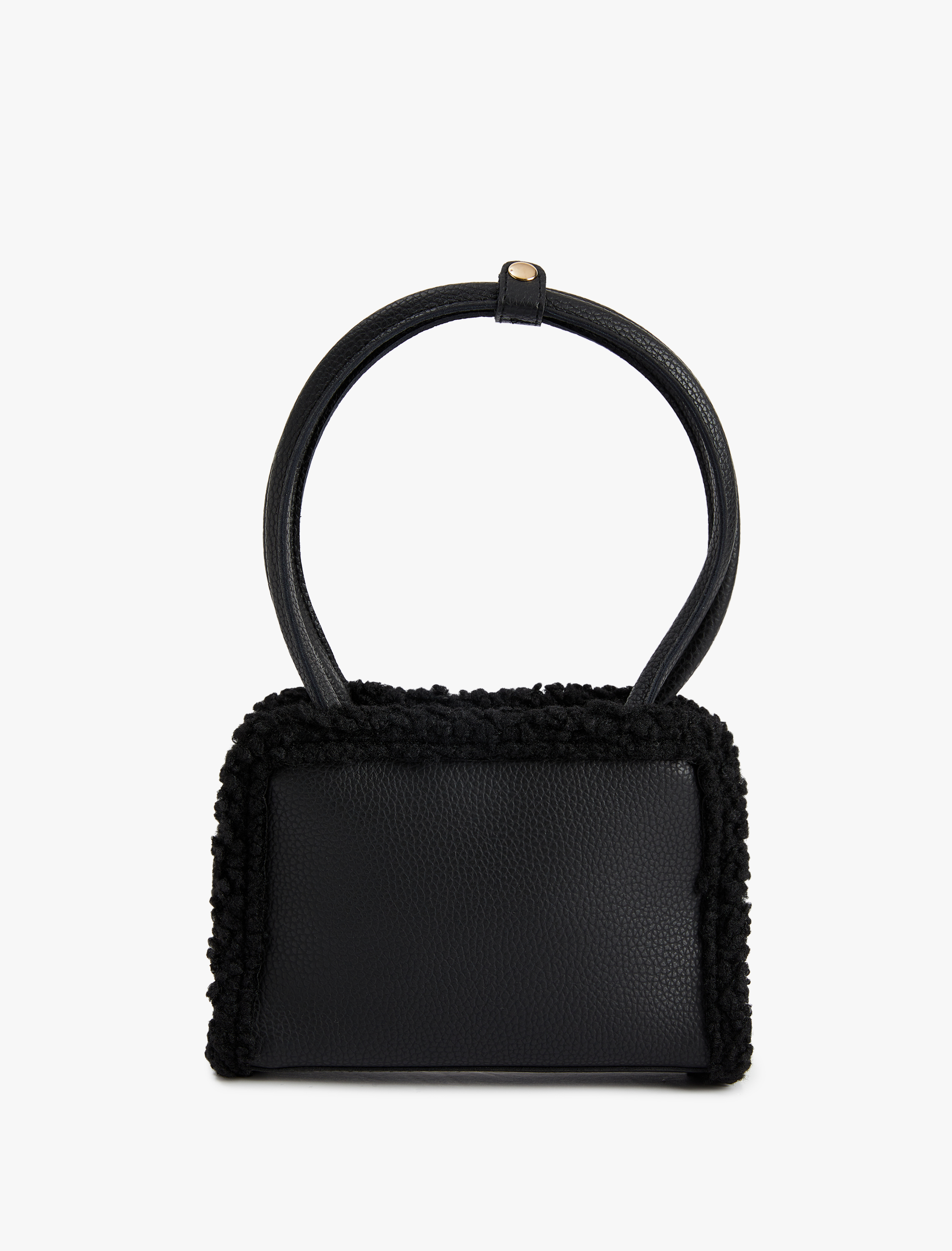 Kadın Peluş Detaylı Fermuarlı Saplı Suni Deri Omuz Çantası