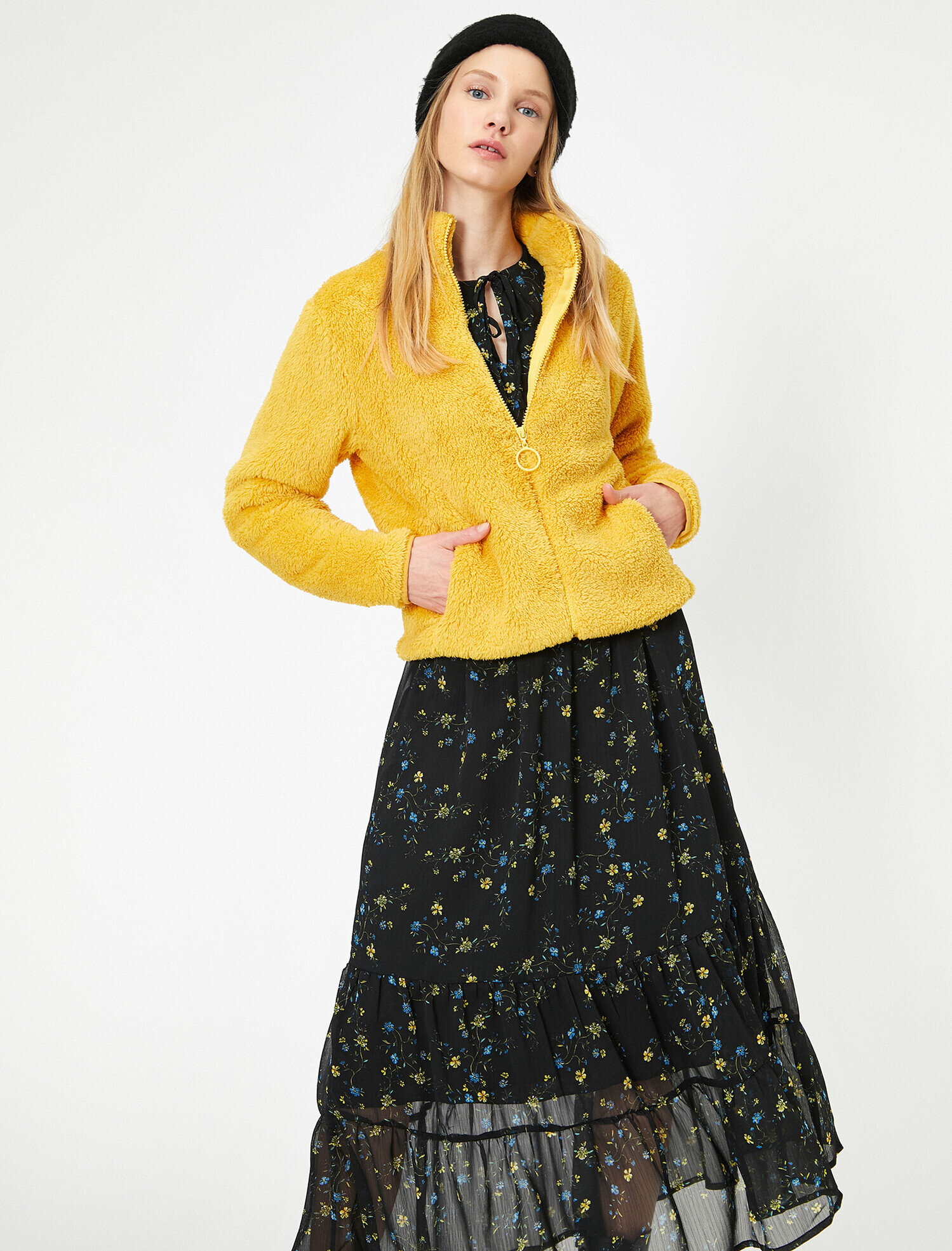Uzun Kollu, Cep Detaylı, Fermuar Detaylı Sweatshirt