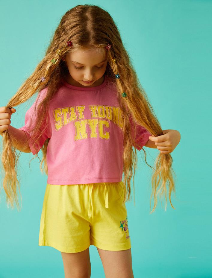 Slogan Baskılı Crop Tişört Pamuklu Sepete Ekle