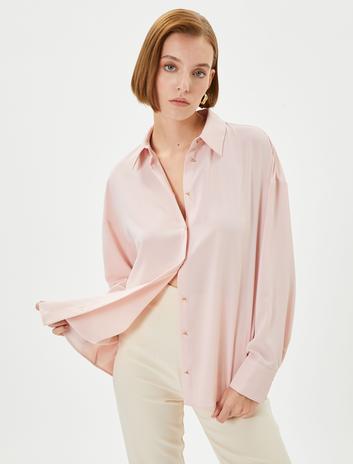 Saten Yaka Gömlek Uzun Kollu Viskon Kumaş Sepete Ekle