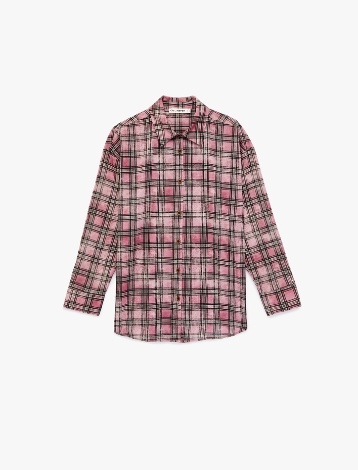 Uzun Kollu Gömlek Yaka Pamuklu Oversize Ekose Gömlek Sepete Ekle