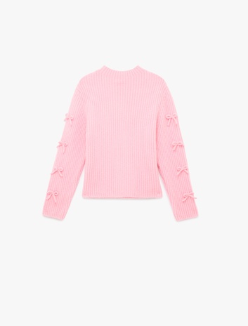 Kız Çocuk Fiyonk Detaylı Uzun Kollu Bisiklet Yaka Triko Kazak
