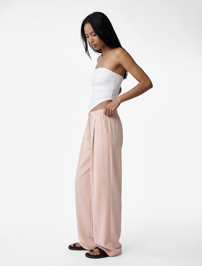 Pembe Pantolon KombinleriPembe pantolon modelleri, pastel yumuşaklığıyla öne çıkarken, günlük giyimden özel etkinliklere kadar çeşitli durumlar için keyifli pembe pantolon kombinleri yaratıyor. Pembe kargo pantolon tasarımları günlük giyim görünümlerini tamamlarken, pembe palazzo pantolon modelleri ofis kombinlerinin vazgeçilmezi oluyor. Son dönemin sevilen formları arasında yer alan pembe paraşüt pantolon ise crop üstlerle kombinleyerek dengeleniyor, tarzınızı ortaya koyuyor.