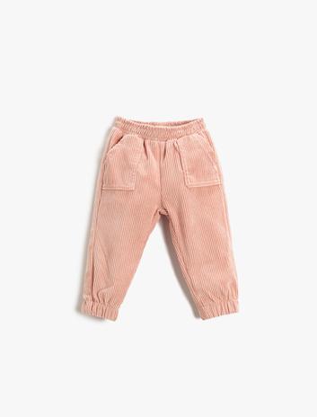 Kız Bebek Basic Fitilli Kadife Jogger Pantolon Cepli