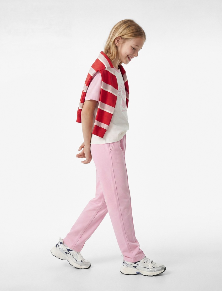 Kız Çocuk Basic Bol Paça Pantolon Pamuklu Beli Lastikli Şardonlu