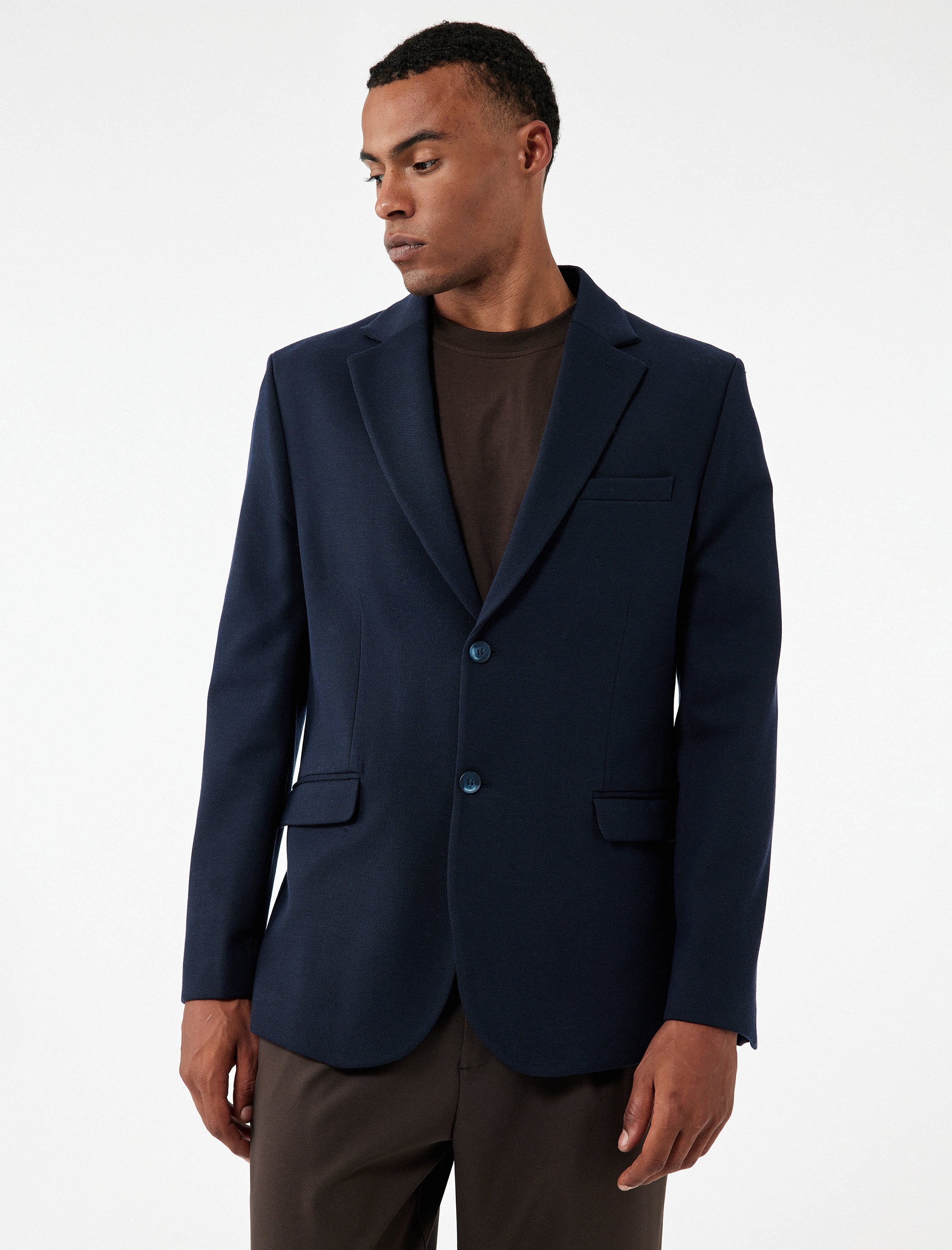 Pike Kumaş Uzun Kollu Kapaklı Cep Detaylı Düğmeli Slim Fit Mono Yaka Blazer Ceket