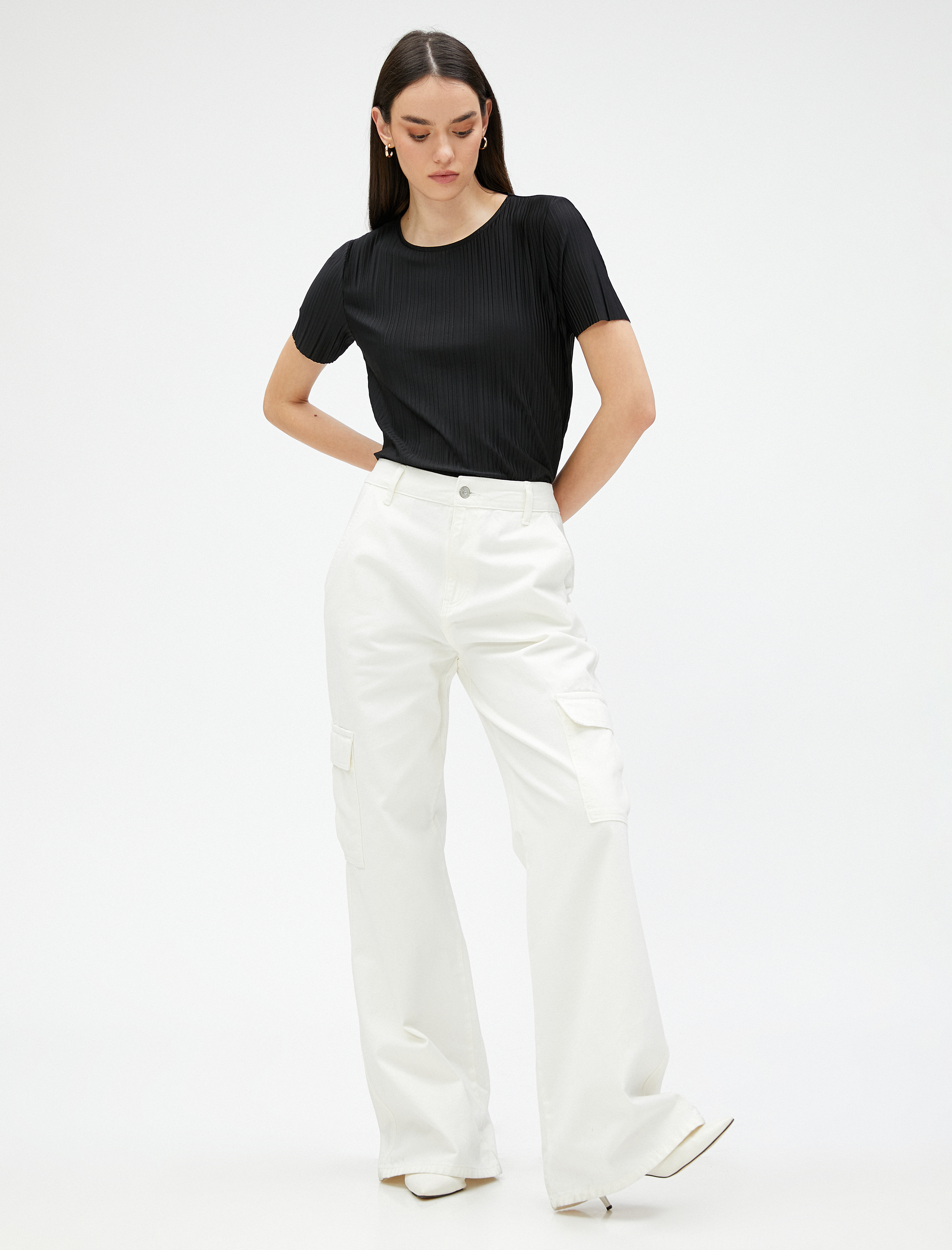 Piliseli Tişört Kısa Kollu Bisiklet Yaka