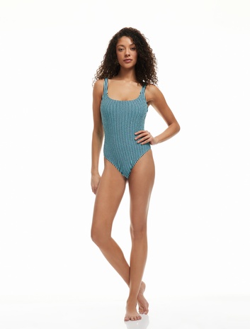 Kalın Askılı Dokulu Fit Çizgili Mayo