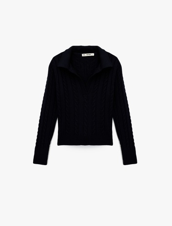 Saç Örgü Dokulu Uzun Kollu Triko Polo Yaka Kazak