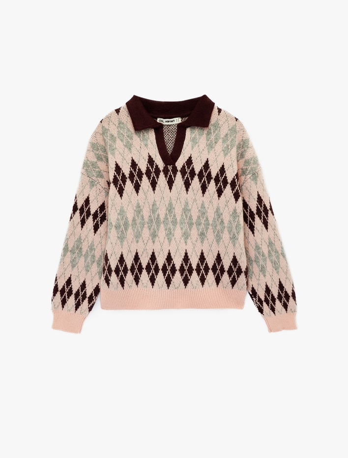 Polo Yaka Baklava Desenli Triko Kazak Sepete Ekle