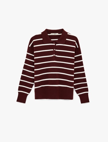 { "id": "8684847694251", "name": "Çizgili Uzun Kollu Polo Yaka Triko Kazak", "taxonomy":["OLE","OLE","TEENAGE","KNITWEAR","SWEATERS"], "currency": "TRY", "unit_price": 1499.99 , "unit_sale_price": 1499.99 , "url": "https://www.koton.com/cizgili-uzun-kollu-polo-yaka-triko-kazak-bordo-cizgili-4119906/", "stock": 26, "color": "BORDO ÇİZGİLİ", "size": "XS", "product_image_url": "https://ktnimg2.mncdn.com/products/2026/01/09/3177317/b320449c-3e24-439a-947f-056eaae6347d_size870x1142.jpg" }