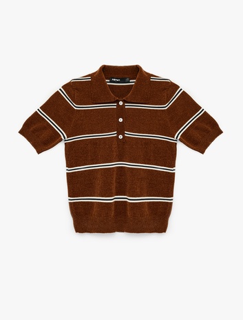 Kısa Kollu Polo Yaka Çizgili Şönil Kazak Sepete Ekle