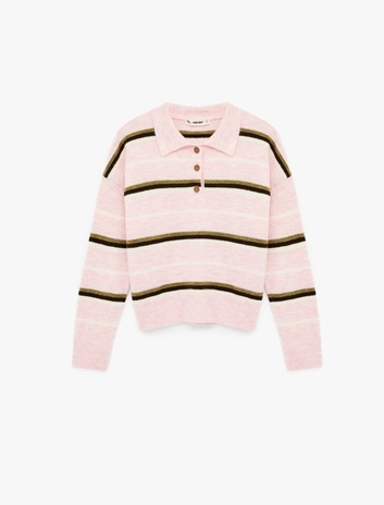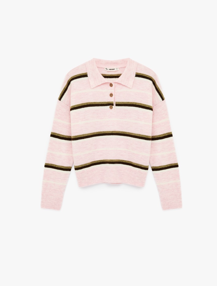 { "id": "8684848057055", "name": "Düğmeli Uzun Kollu Polo Yaka Çizgili Triko Kazak", "taxonomy":["OLE","OLE","TEENAGE","KNITWEAR","SWEATERS"], "currency": "TRY", "unit_price": 1299.99 , "unit_sale_price": 1299.99 , "url": "https://www.koton.com/dugmeli-uzun-kollu-polo-yaka-cizgili-triko-kazak-pembe-cizgili-4138702-2/", "stock": 32, "color": "PEMBE ÇİZGİLİ", "size": "S", "product_image_url": "https://ktnimg2.mncdn.com/products/2026/01/16/3181073/00b84f8b-df0c-4983-a9bf-500562da71ff_size870x1142.jpg" }