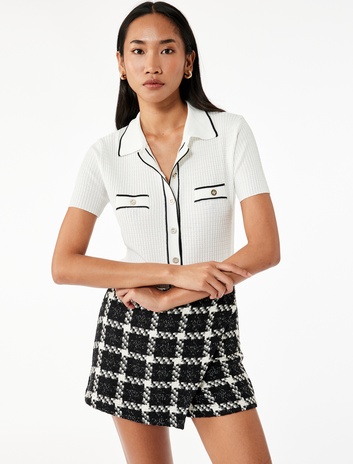 Triko Polo Yaka İnci Detaylı Kısa Kollu Kazak Sepete Ekle