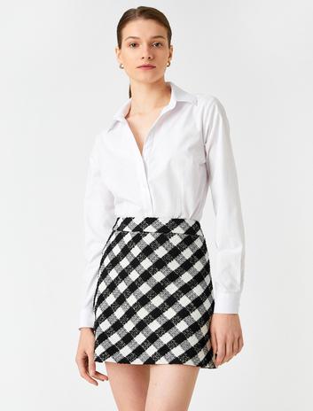 Kareli Düğme Detaylı A Kesim Mini Etek