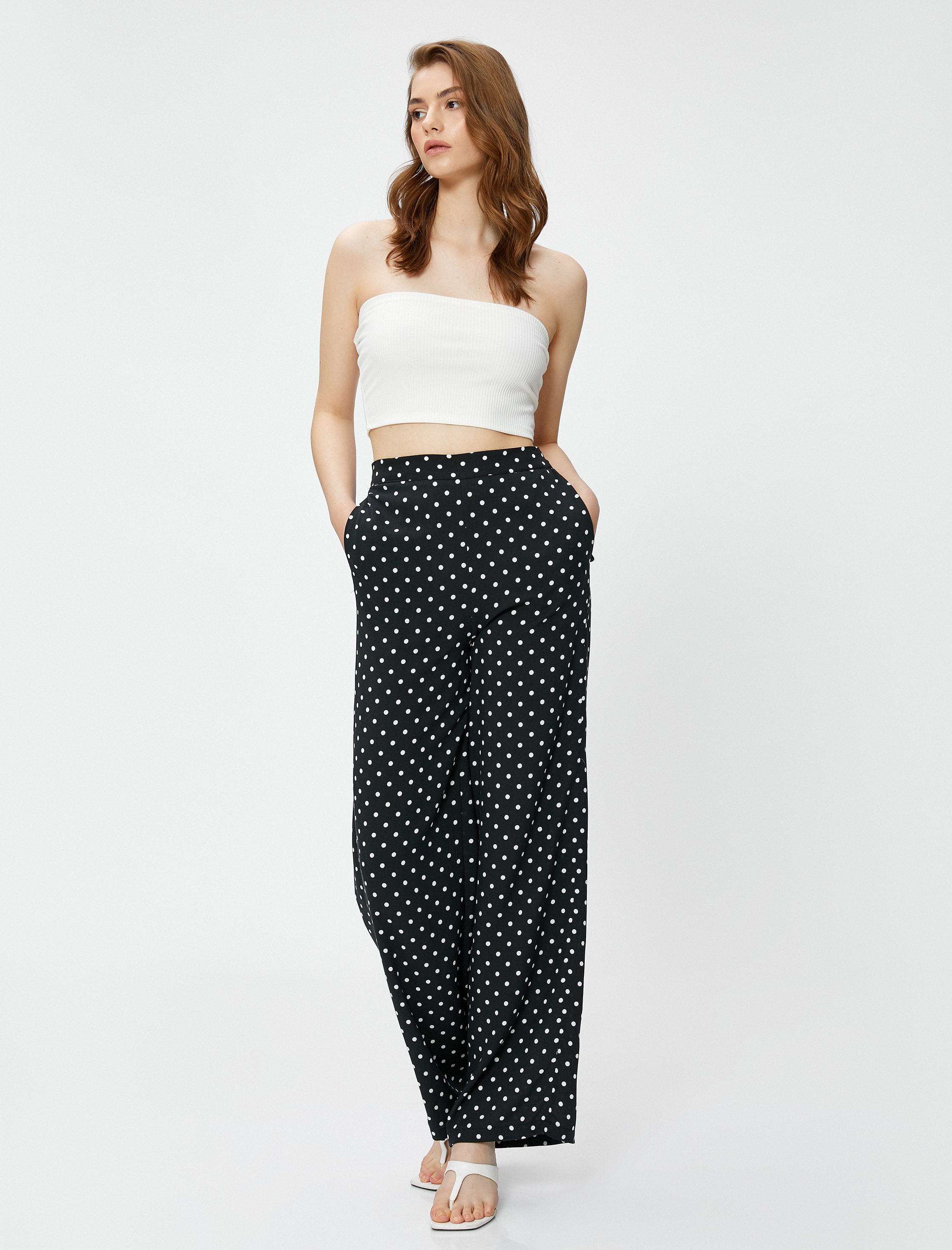 Puantiyeli Bol Paça Pantolon Cepli Viskon