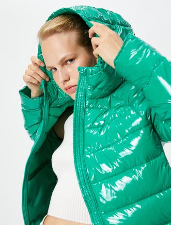 Şişme Mont Kapşonlu Cep Detaylı Fermuarlı