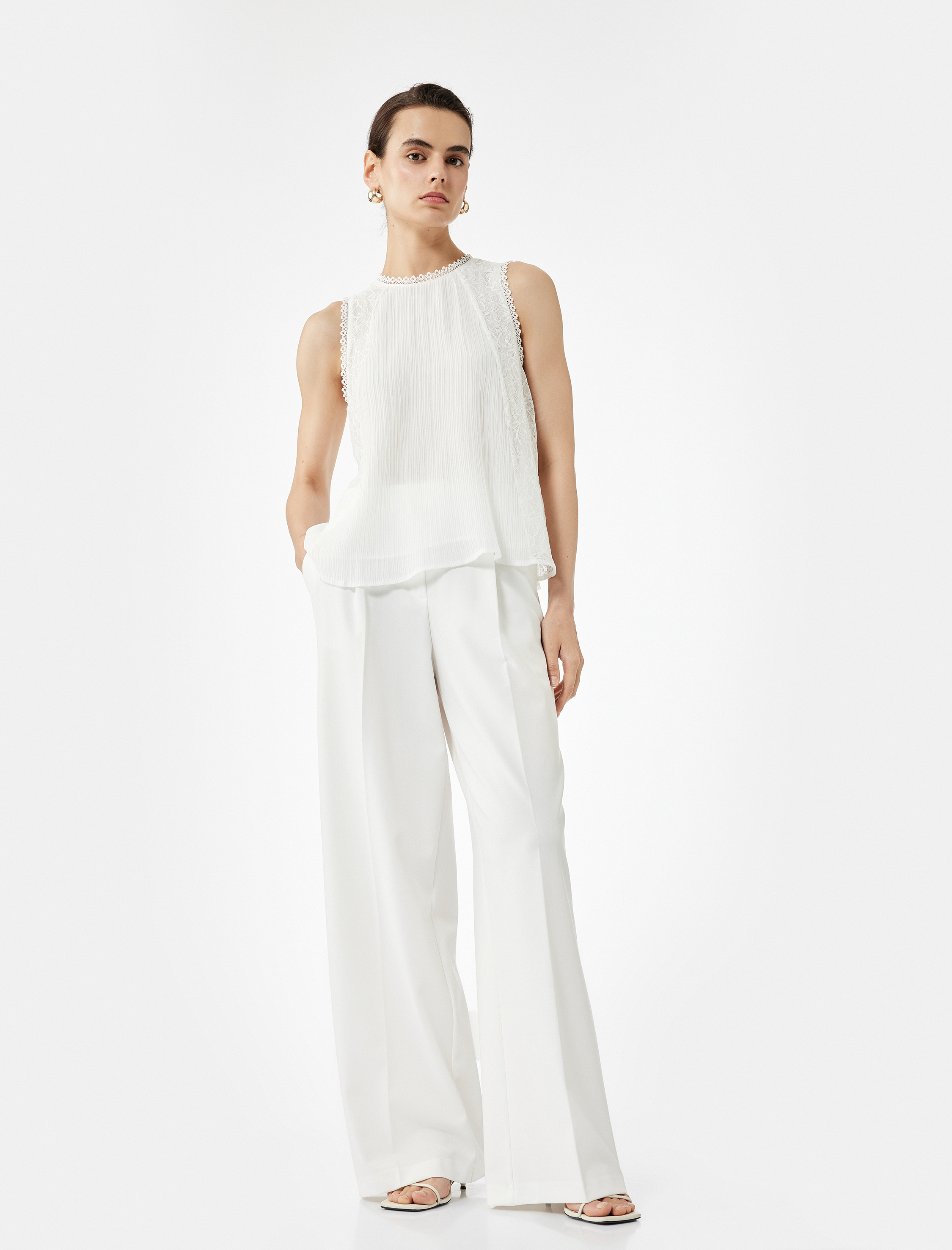 Rahat Kalıp Bisiklet Yaka Dantelli Tül Kolsuz Bluz