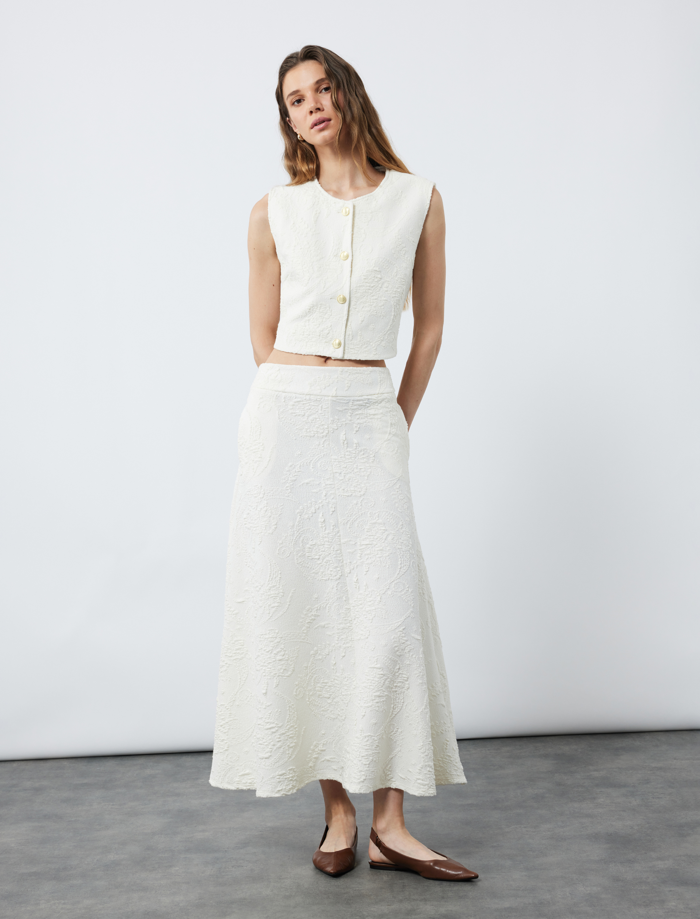 Rahat Kalıp Floral Dokulu Midi Boy Çan Etek