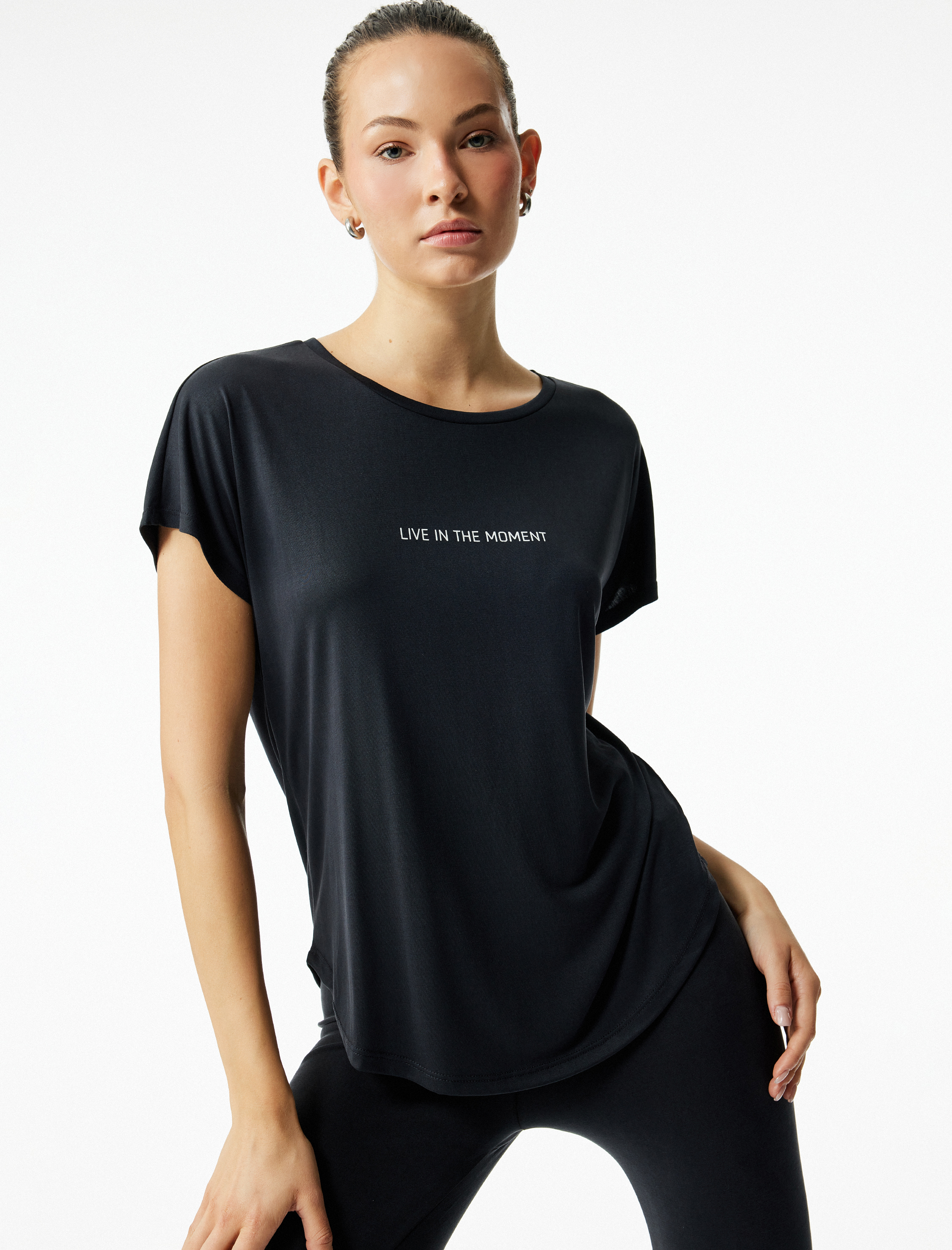 Rahat Kalıp Kısa Kollu Bisiklet Yaka Modal Baskılı Spor Tişört