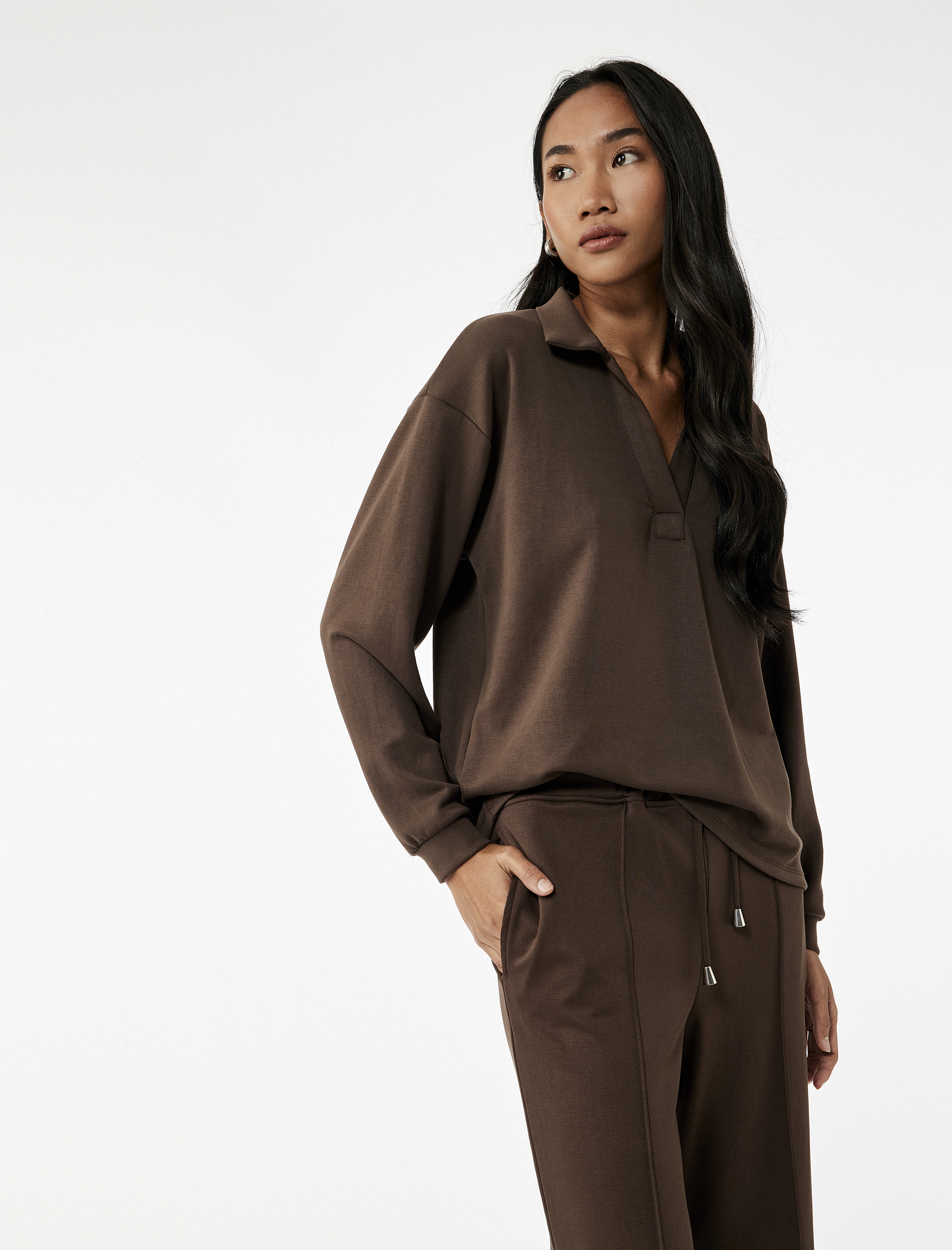Rahat Kalıp Modal Kumaş Uzun Kollu Polo Yaka Sweatshirt