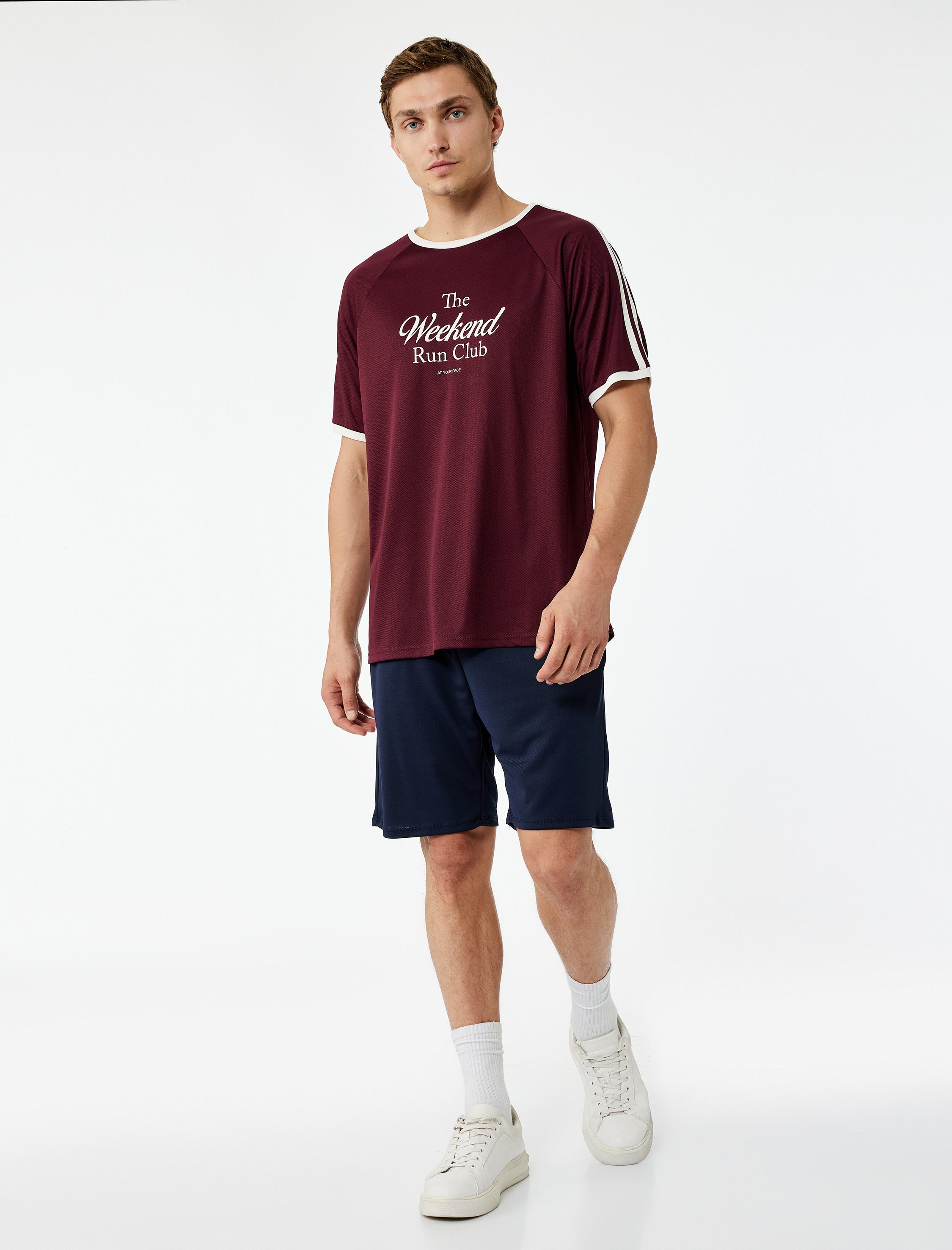 Rahat Kesim Kısa Kollu Biyeli Bisiklet Yaka Baskılı Spor Tişört