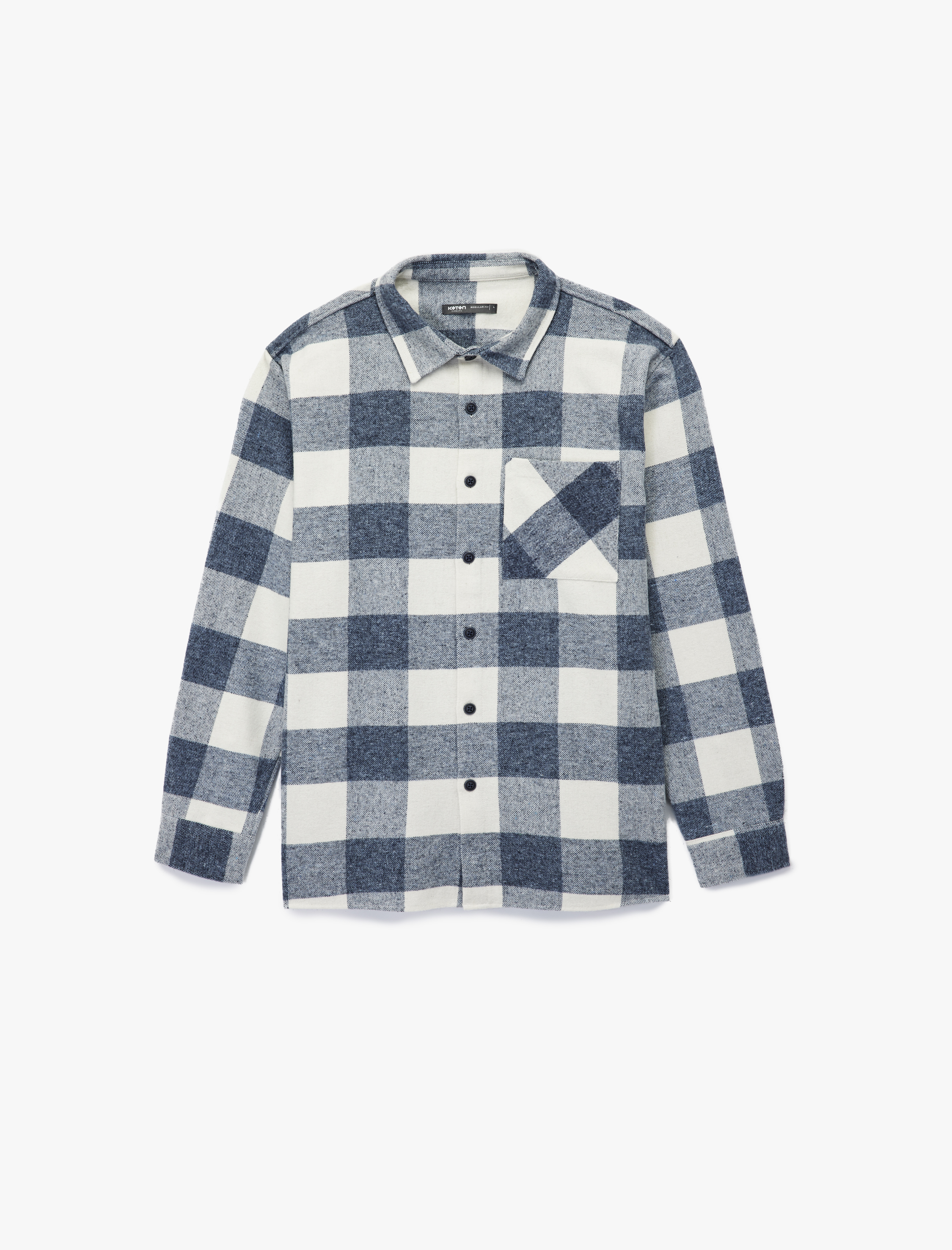Regular Fit Düğmeli Klasik Yaka Uzun Kollu Kareli Gömlek