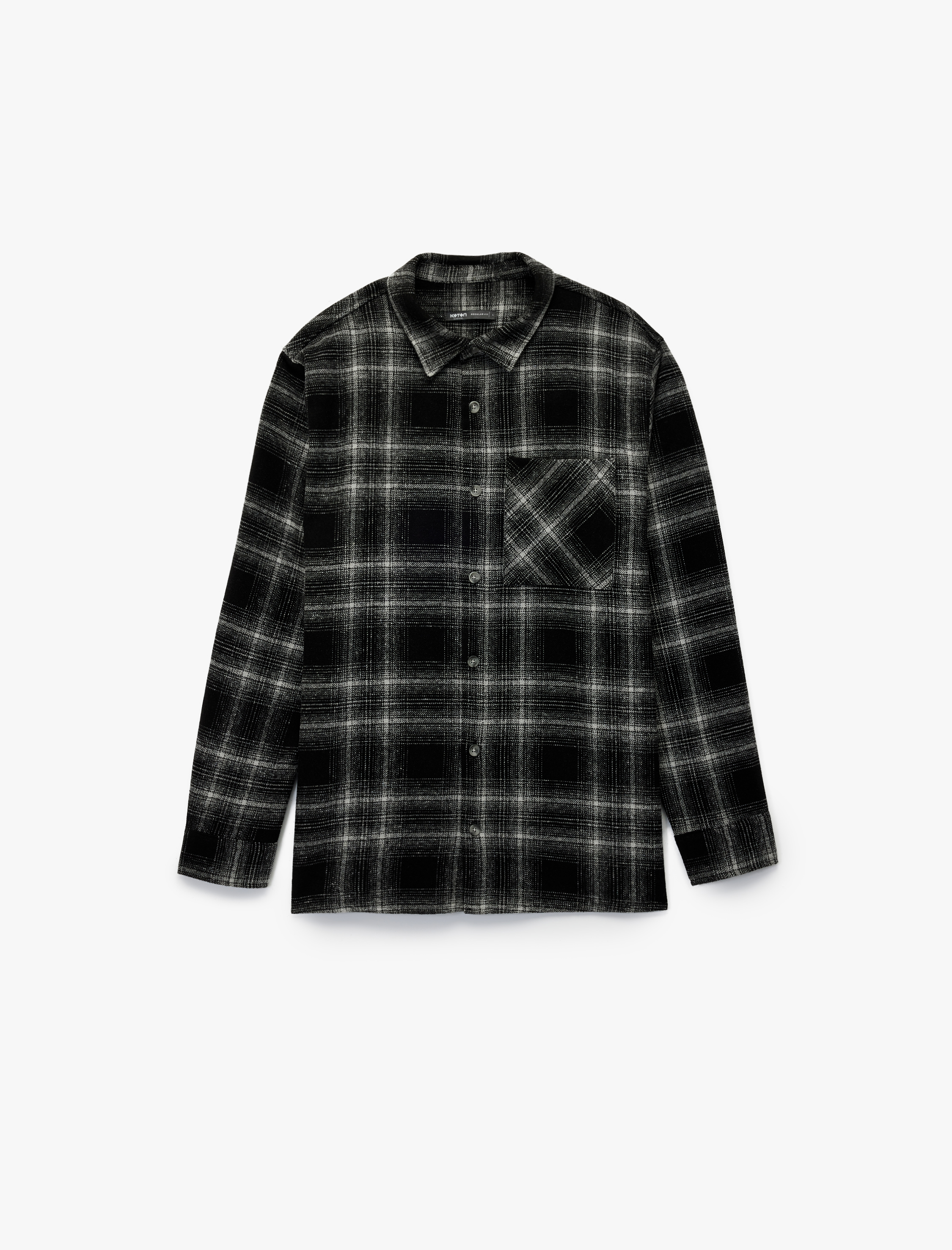 Regular Fit Düğmeli Uzun Kollu Cepli Klasik Yaka Oduncu Gömleği