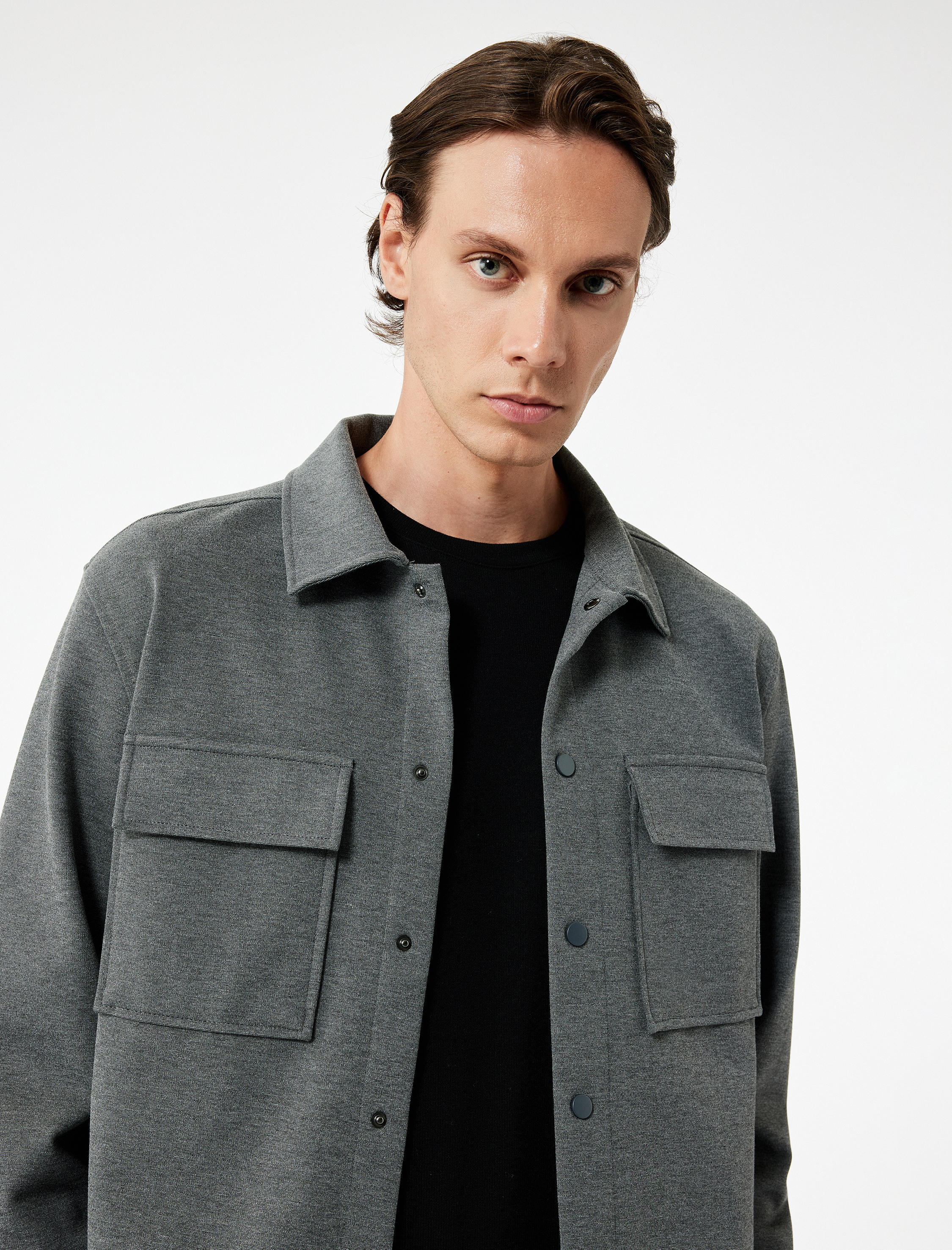 Regular Fit Kapaklı Cep Detaylı Viskon Karışımlı Klasik Yaka Uzun Kollu Gömlek Ceket