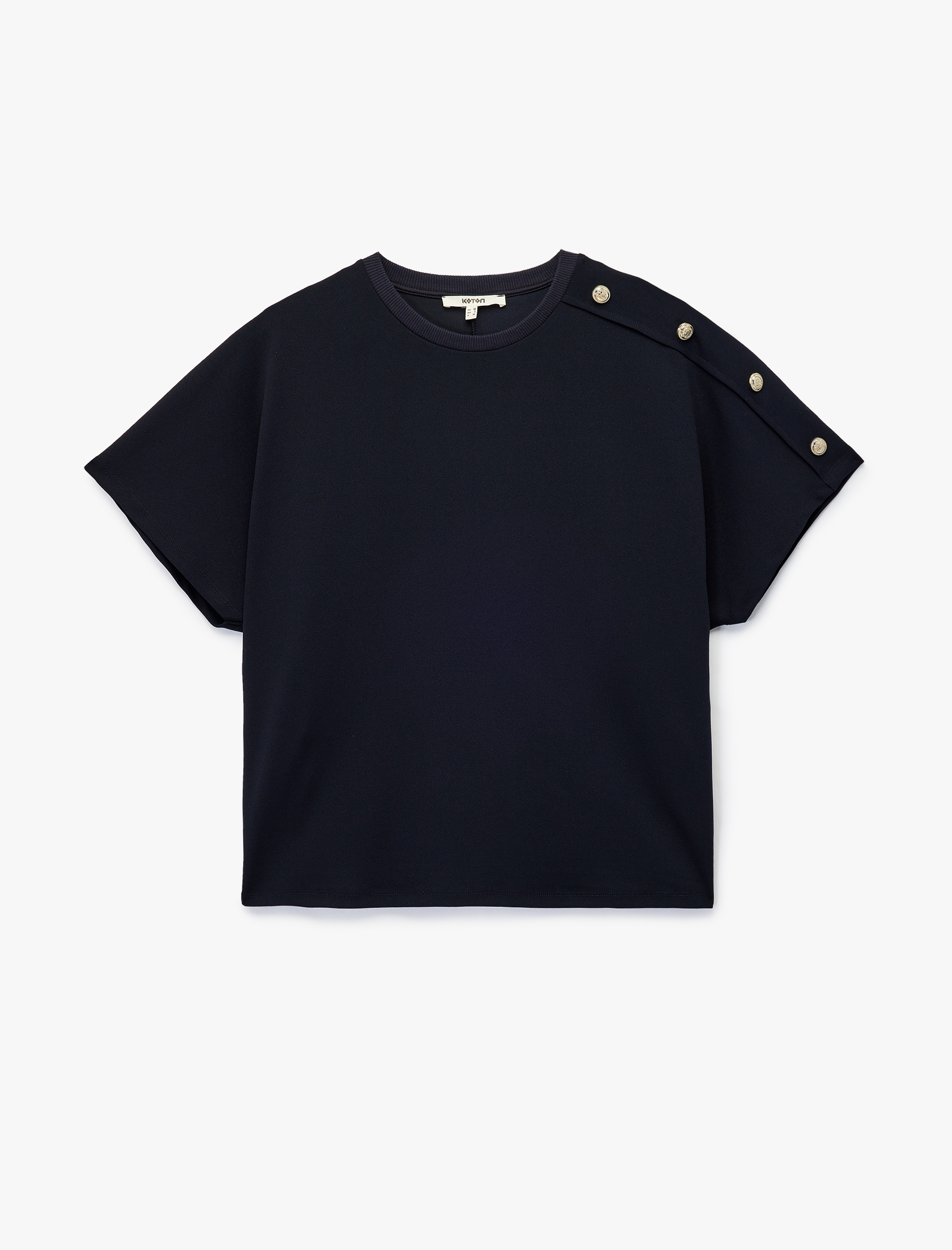 <p><p>Regular fit kısa kollu bisiklet yaka tişört, modern tasarımı ve şıklığı bir arada sunuyor. Omuzda yer alan zarif düğme detayları tişörte hareket katarken günlük şıklığı da yanınıza getiriyor. Yumuşak ve esnek yapısıyla gün boyu rahatlık vaat ediyor. Tişört, basic tasarımı sayesinde dolabınızın vazgeçilmez parçalarından biri olmaya aday.</p></p> <strong>Stil Önerisi</strong> <p><p>Kısa kollu bisiklet yaka tişörtü, skinny jean pantolon ve sneakerlarla kombinleyerek günlük şıklık yaratabilirsiniz. Ofiste ise üzerine blazer ceket alarak, ofis stilinizi tamamlayabilirsiniz. Minimal aksesuarlarla tarzınızı zenginleştirin ve her ortamda dikkat çekici olun.</p></p> <strong>Ürün Özellikleri</strong> <p><p>Kol Tipi: Kısa Kol<br>Yaka Tipi: Bisiklet Yaka<br>Detay: Düğmeli<br>Fit: Regular Fit<br>Kullanım Alanı: Günlük Giyim, Ofis Giyim</p></p> <p><p>Koton'un şık ve rahat tasarımlarıyla dolabınızı zenginleştirin! Tişört modelleriyle hem konforu hem de tarzı bir arada yaşayın.</p></p> <p></p> <p></p>