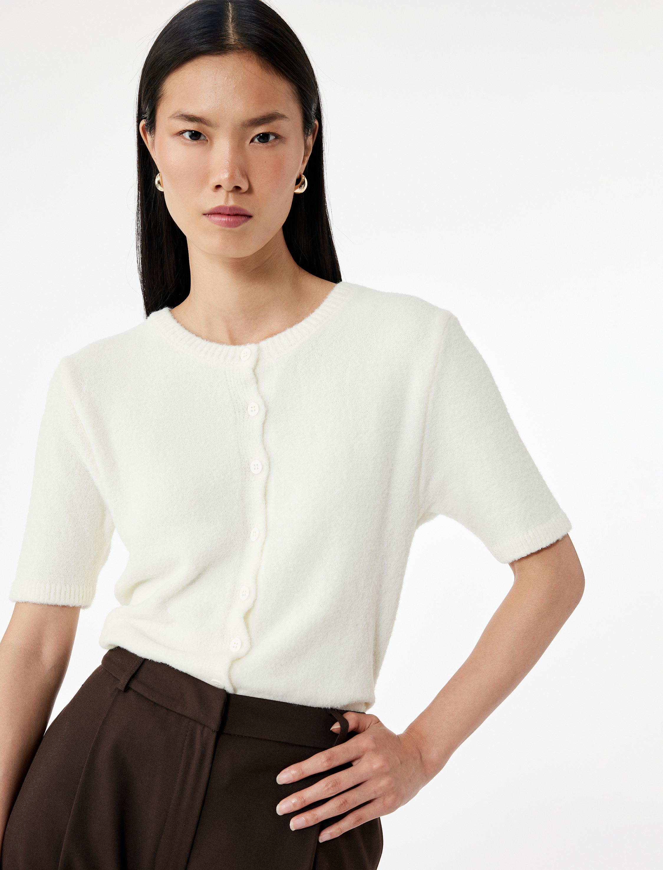 Regular Fit Kısa Kollu Bisiklet Yaka Düğmeli Triko Hırka