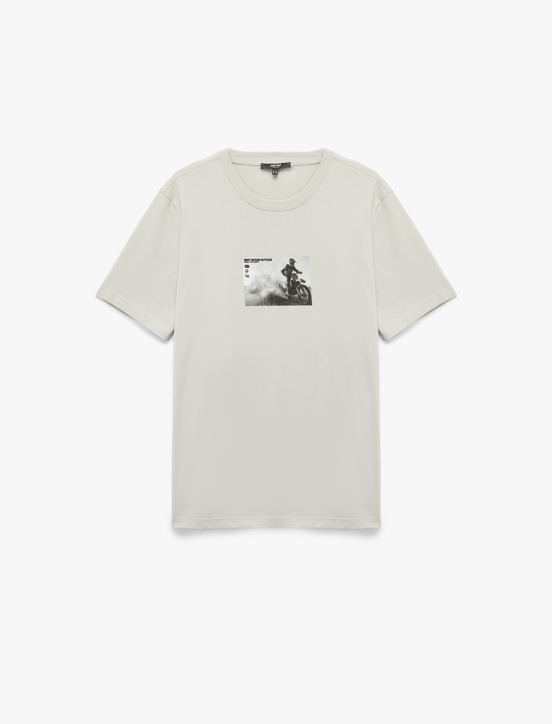 Regular Fit Kısa Kollu Bisiklet Yaka Pamuklu Baskılı Tişört