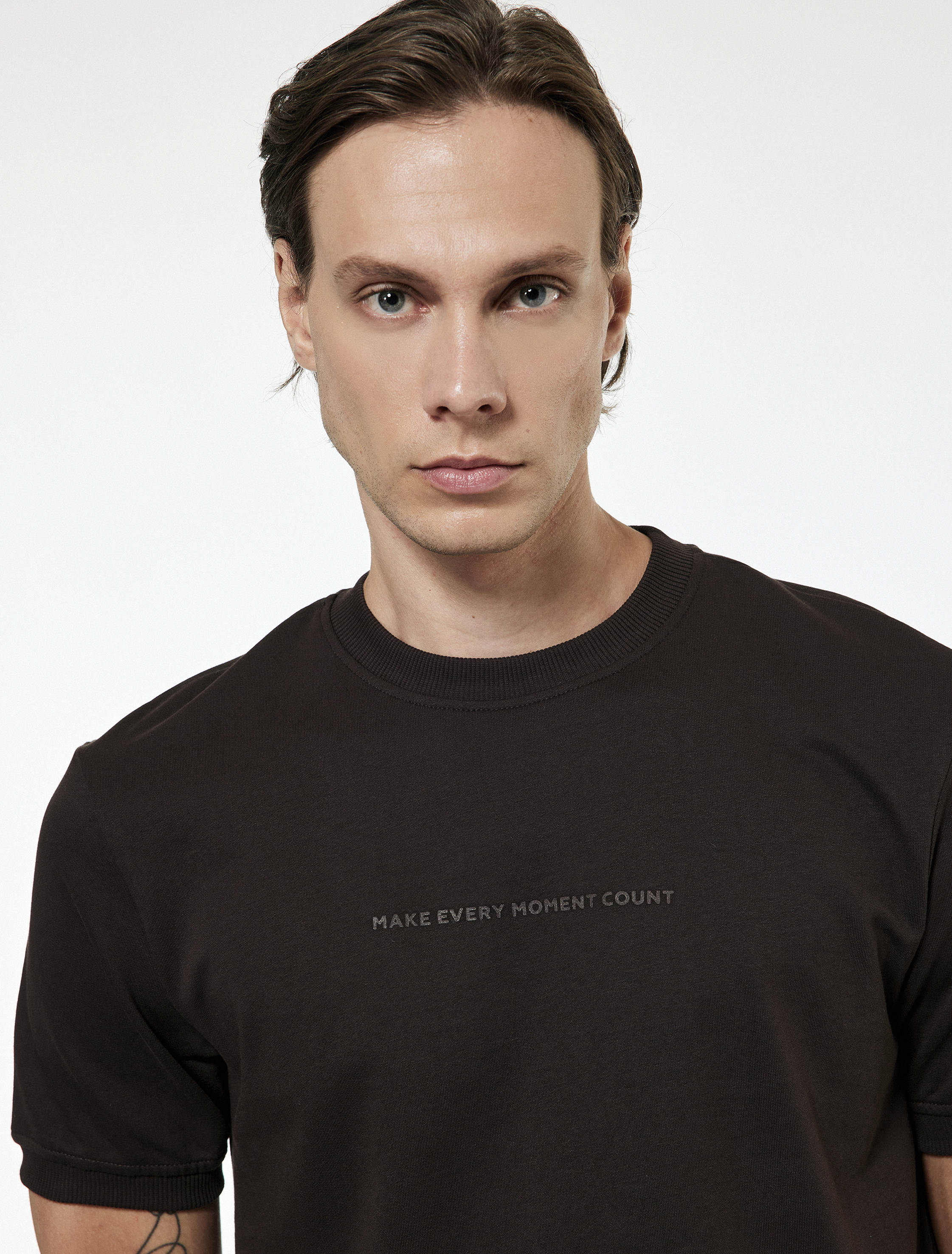 Regular Fit Kısa Kollu Bisiklet Yaka Tok Kumaş Pamuklu Baskılı Tişört
