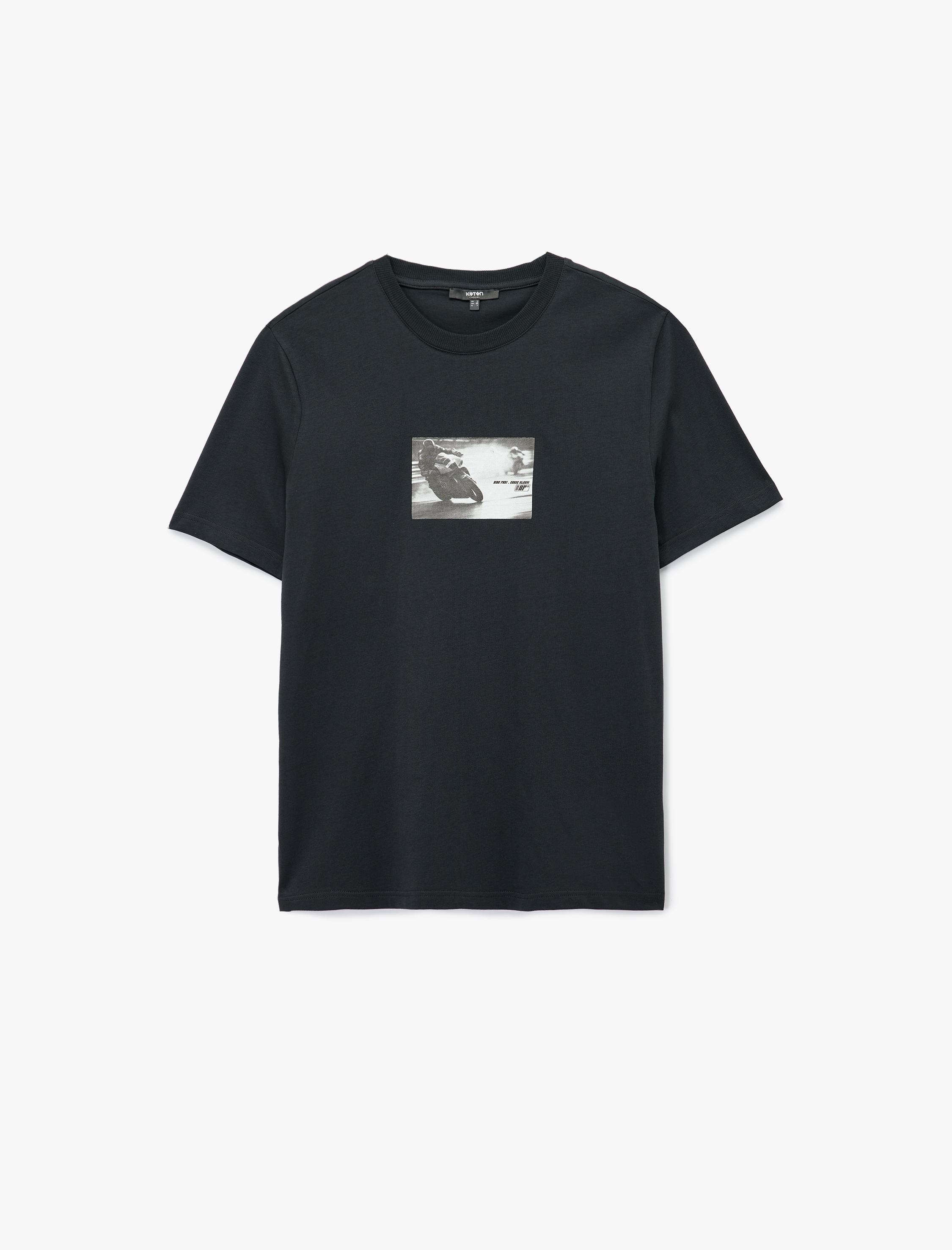Regular Fit Kısa Kollu Pamuklu Bisiklet Yaka Baskılı Tişört