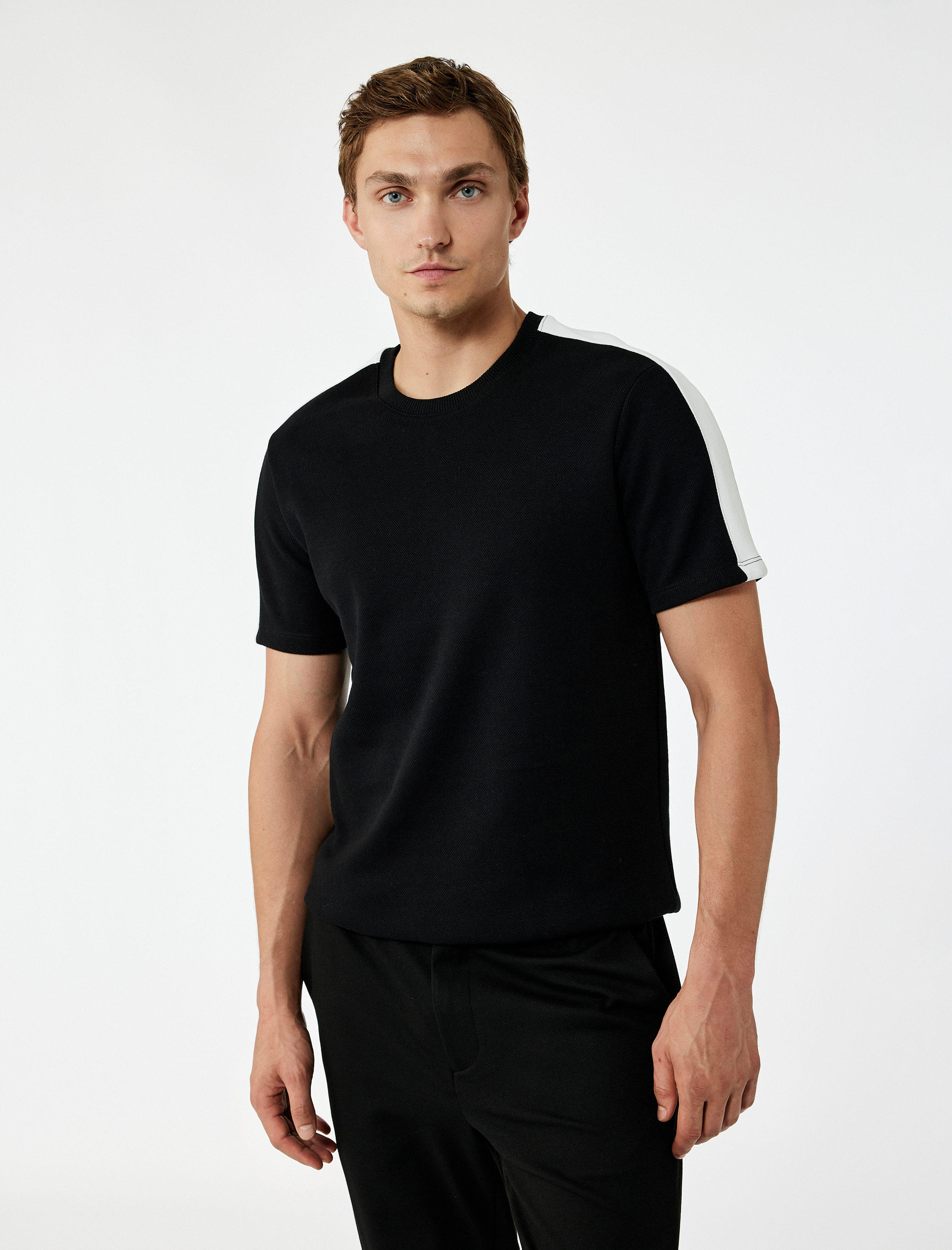 Regular Fit Kısa Kollu Renk Kontrastlı Bisiklet Yaka Tişört