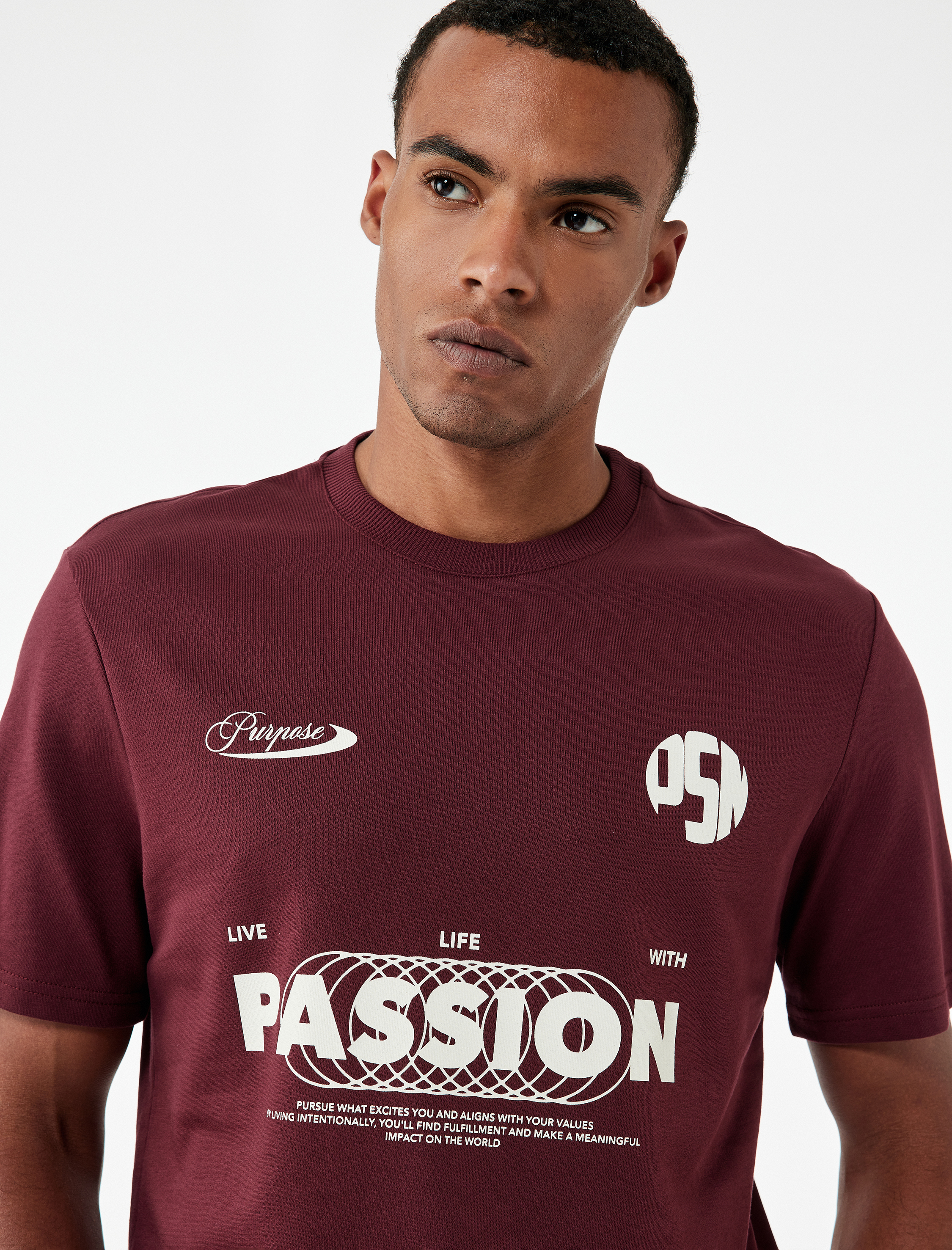 Regular Fit Kısa Kollu Tok Kumaş Bisiklet Yaka Pamuklu Baskılı Tişört