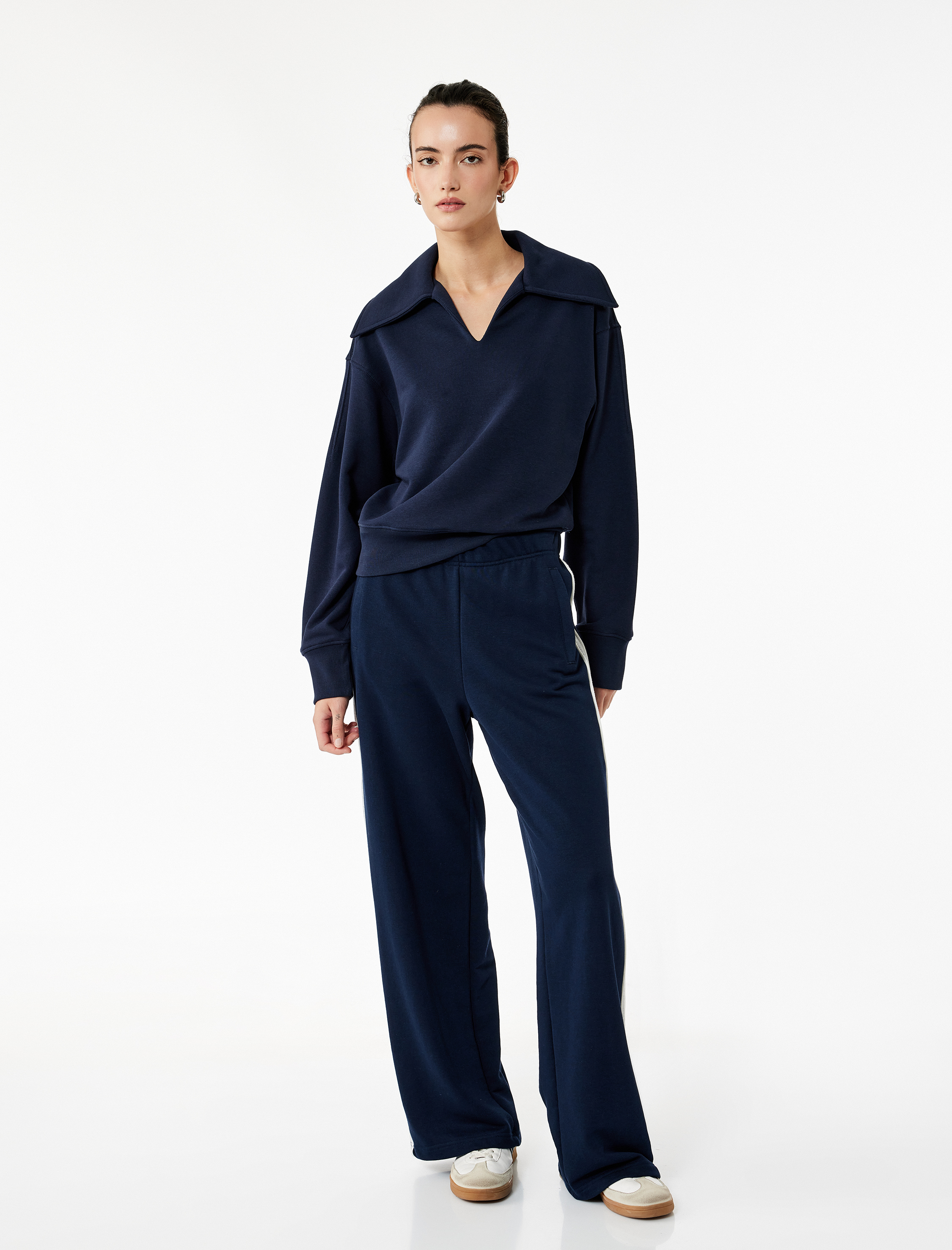 Regular Fit Üç İplik Uzun Kollu Polo Yaka Sweatshirt