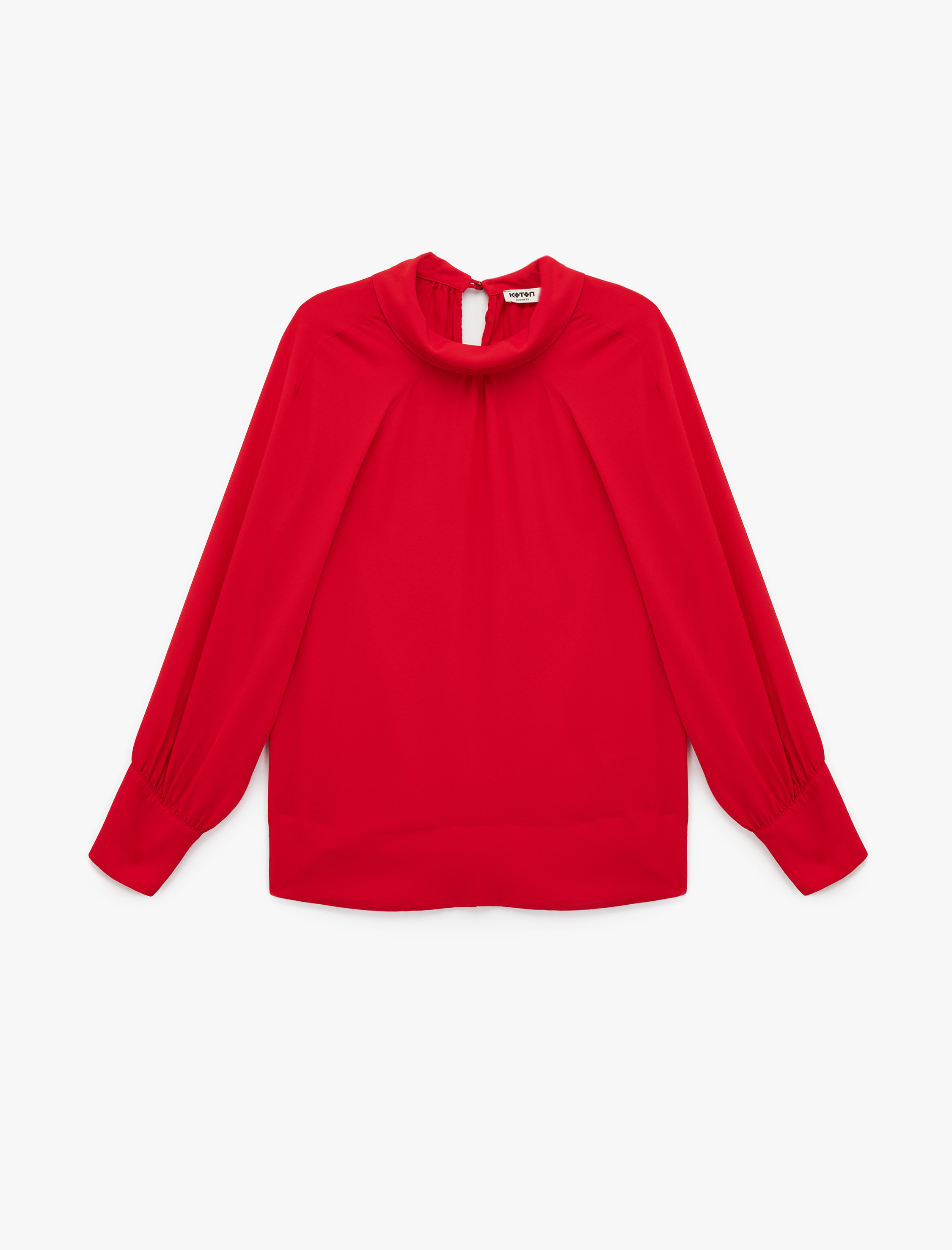 Regular Fit Uzun Kollu Dik Yaka Drapeli Bluz