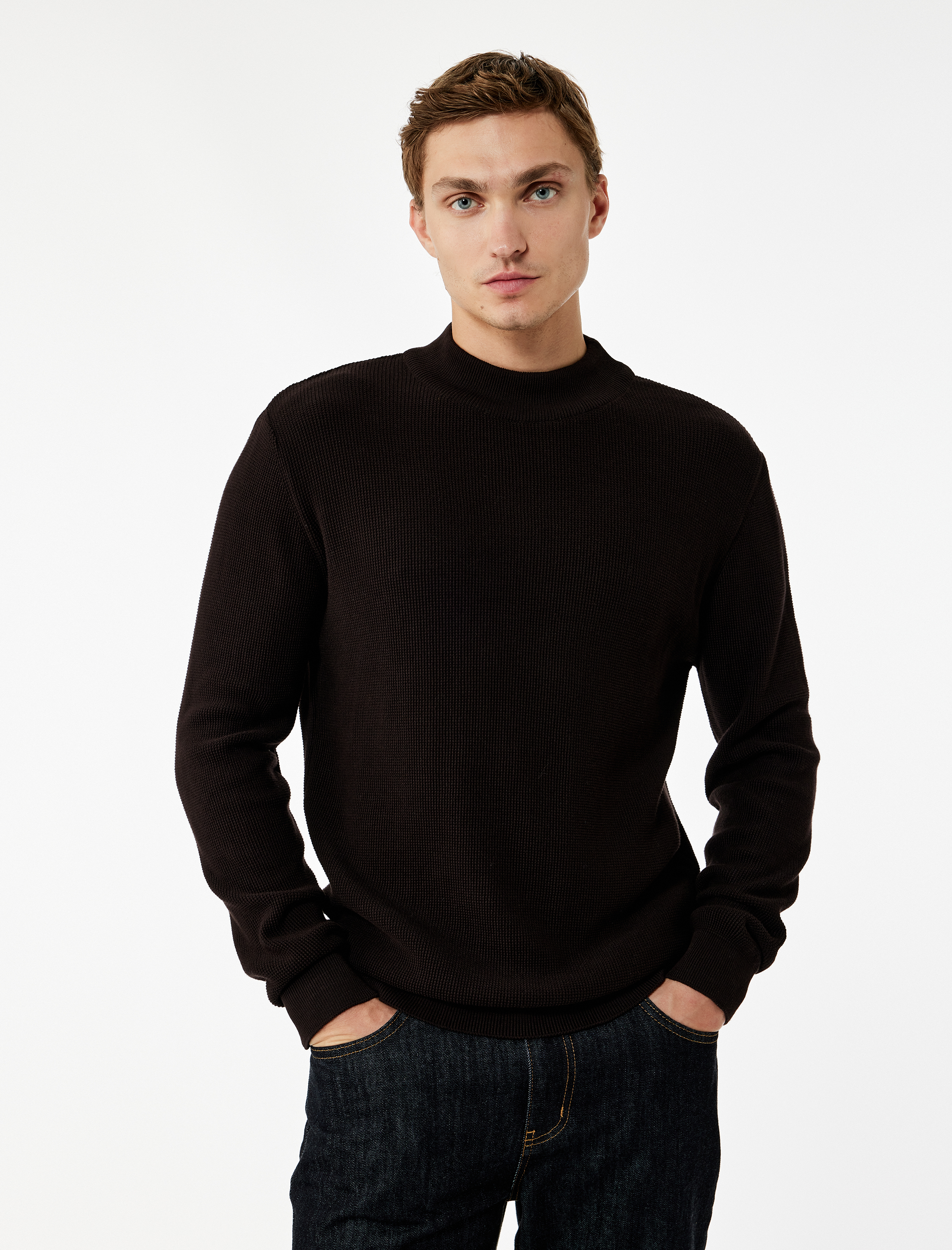 Regular Fit Uzun Kollu Dokulu Pamuklu Dik Yaka Triko Kazak