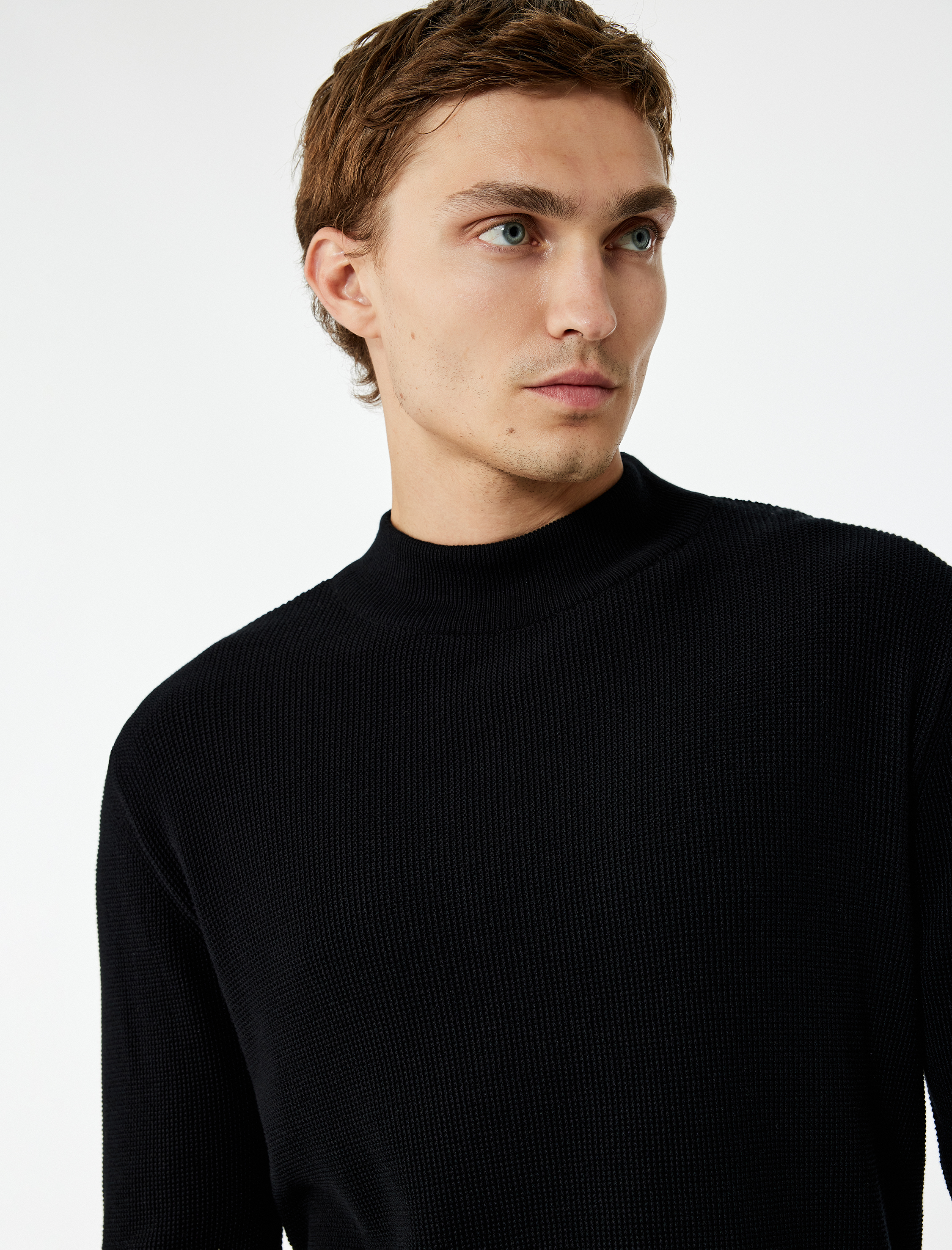 Regular Fit Uzun Kollu Dokulu Pamuklu Dik Yaka Triko Kazak