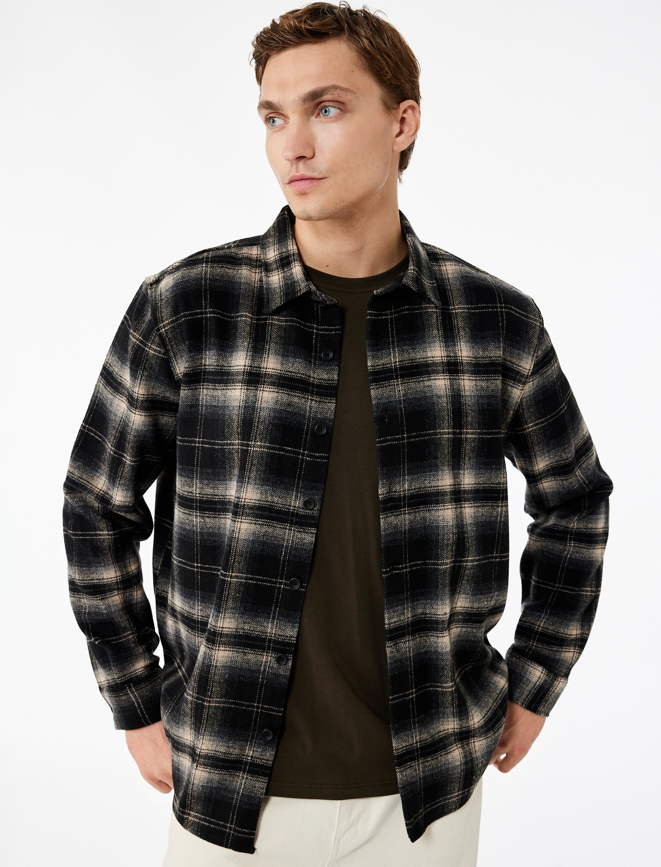 Regular Fit Uzun Kollu Düğmeli Klasik Yaka Oduncu Gömleği