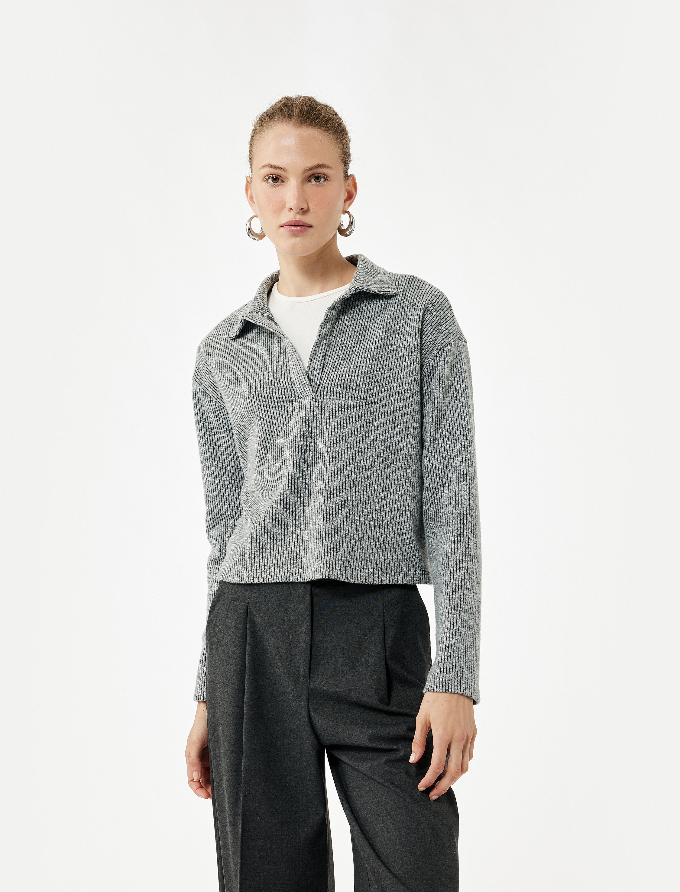 Regular Fit Uzun Kollu Polo Yaka Fitilli Tişört