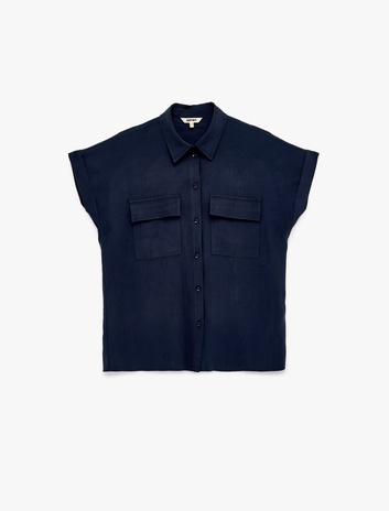 Kupro Viskon Kumaş Cep Detaylı Kısa Kollu Gömlek Sepete Ekle