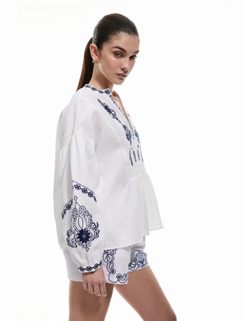 Pamuklu Cepli Etnik Desenli İşlemeli Yüksek Bel Müslin Şort Sepete Ekle