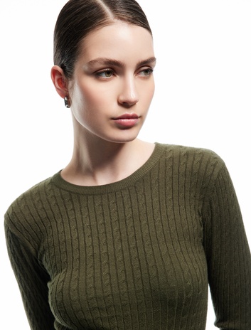 Saç Örgü Dokulu Dik Yaka Triko Kazak