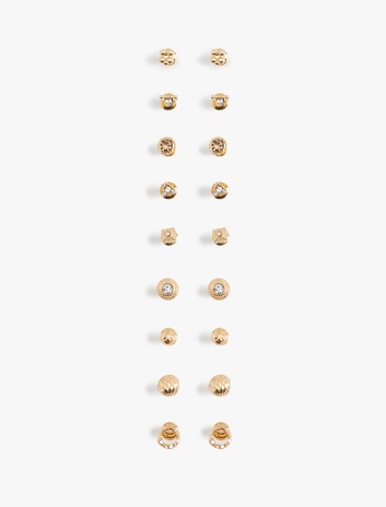 Taş Detaylı 9'lu Top Küpe Seti Sepete Ekle