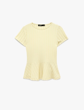 Bürümcük Kumaş Slim Fit Yuvarlak Yaka Kısa Kollu Peplum Tişört